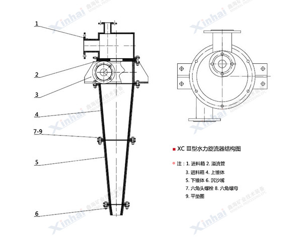 鑫海旋流器組能夠滿足大型礦山的礦量需求,可為用戶定制旋流器組,根據不同的給礦粒度、底流濃度和生產量等對旋流器進行選型并確定旋流器數量,其分級效率比螺旋分級機高20-30%,可達到70-85%。