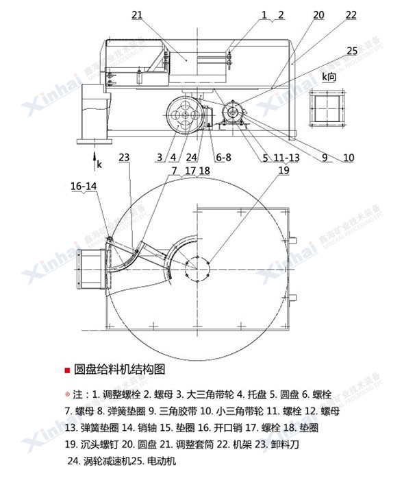 【產品改進】:可按用戶要求配置調速電機,通過調節圓盤轉速,調整給礦量。