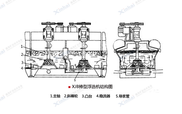 【應用范圍】:XJB棒型浮選機適用于中、小型選礦廠處理密度大、粒度粗的金屬礦石,在各種浮選作業中均可采用,尤其是對鉛、鋅、銅、鉬、硫和硅砂的選別效果顯著。