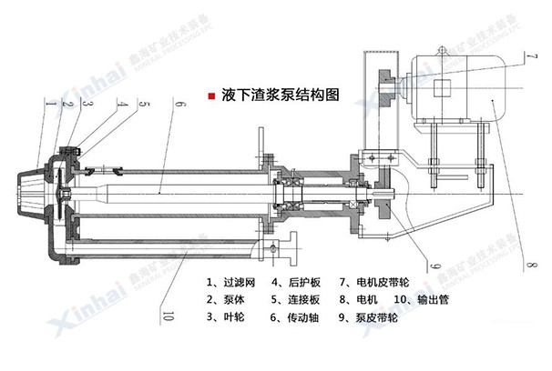 鑫海液下渣漿泵的主要組成部分包括:葉輪、軸、前后護板、前后泵殼、填料箱等。