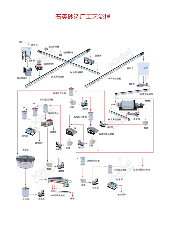 【應用領域】:石英砂生產流程可適用于含鐵質或云母的石英砂。