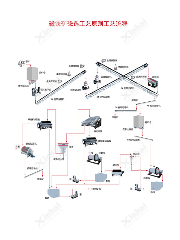 單一磁鐵礦石中的鐵礦物絕大部分是磁鐵礦,由于磁鐵礦礦石組成簡單、磁性強、易磨易選,因此常采用弱磁選方法。